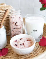 -The Little Market Soaking Salt (Rose): Relax in a warm bath with hand-blended pink Himalayan soaking salts, known to relieve muscle aches, stimulate circulation, and detoxify your skin. Infused with rose oil and rose petals to achieve a relaxing experience.