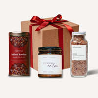 We've partnered with Prosperity Candle to create this ethically sourced gift set.  Tahmina teas are infused with ethically-sourced saffron from Afghanistan. Each Prosperity Candle and Soaking Salt is handmade by a woman artisan building a brighter future for herself in the U.S. after living for years as a refugee. This gift set comes in optional sustainable, plastic-free gift packaging, ready to send to your loved ones to create relaxing moments.
